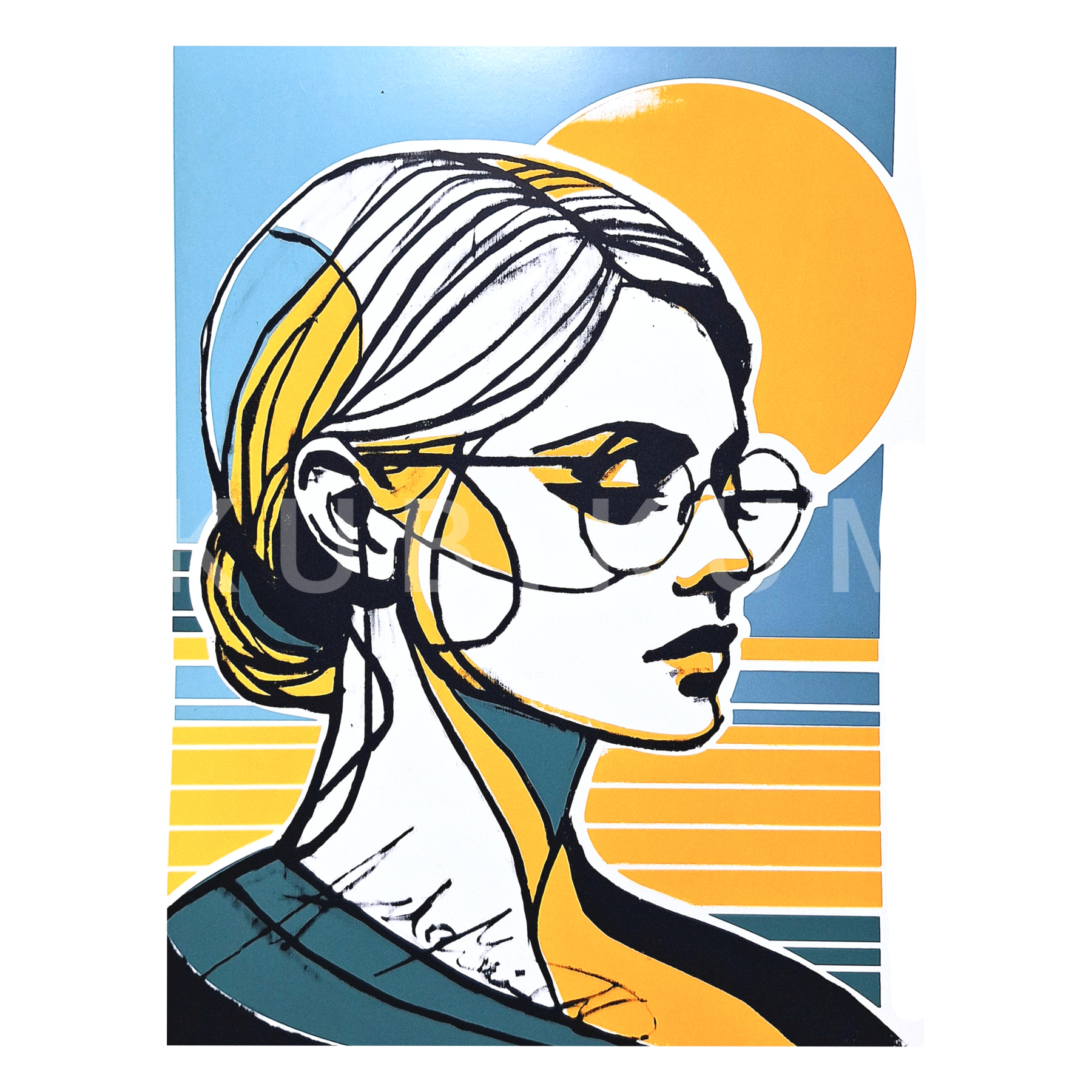 Dielo zobrazuje ženský portrét v zjednodušenej podobe, kde sa plochy výrazných farieb prelínajú s jemnou, ručne kreslenou líniou. Technika sieťotlače umožňuje presné vrstvenie plných tvarov v kontraste s krehkou kresbou, čo podčiarkuje napätie medzi pevnosťou a zraniteľnosťou. Tvár ženy pôsobí sústredene kľudne ale mierne ustarostene, zároveň však nesie jemnosť a krehkosť, ktorá odkazuje na emocionálnu hĺbku a vnútorný svet.